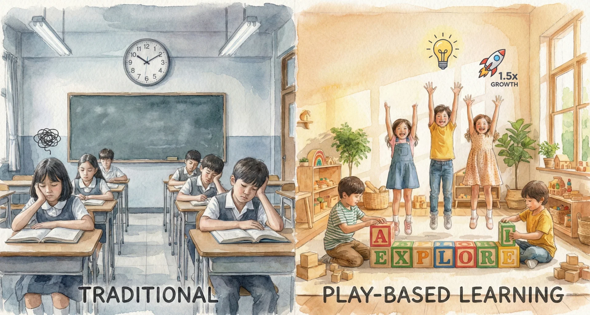 ความเชื่อที่ว่าการเรียนแบบนั่งโต๊ะ (Formal Instruction) ได้ผลดีกว่าการเล่นนั้นถูกหักล้างด้วยงานวิจัยสมัยใหม่ ผลการศึกษาจากสถาบันการศึกษาระดับโลกอย่าง University of Oxford และ University of Helsinki ยืนยันว่า: