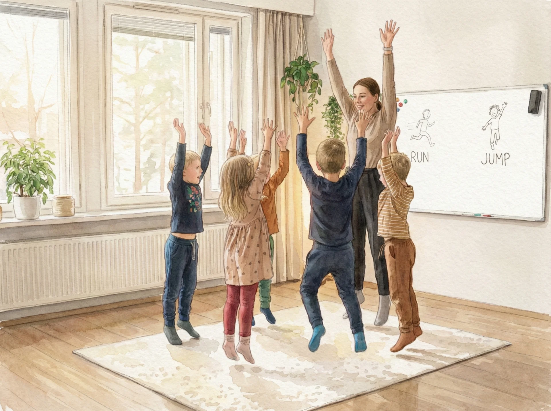ทำไมถึงได้ผล? เพราะการเชื่อมโยงคำศัพท์กับการกระทำ (Physical Movement) จะช่วยส่งข้อมูลตรงไปยังสมองส่วนความจำระยะยาวโดยไม่ต้องผ่านกระบวนการแปลภาษาในหัว ทำให้เด็กซึมซับภาษาอังกฤษได้เหมือนกับที่เขาเรียนรู้ภาษาแม่